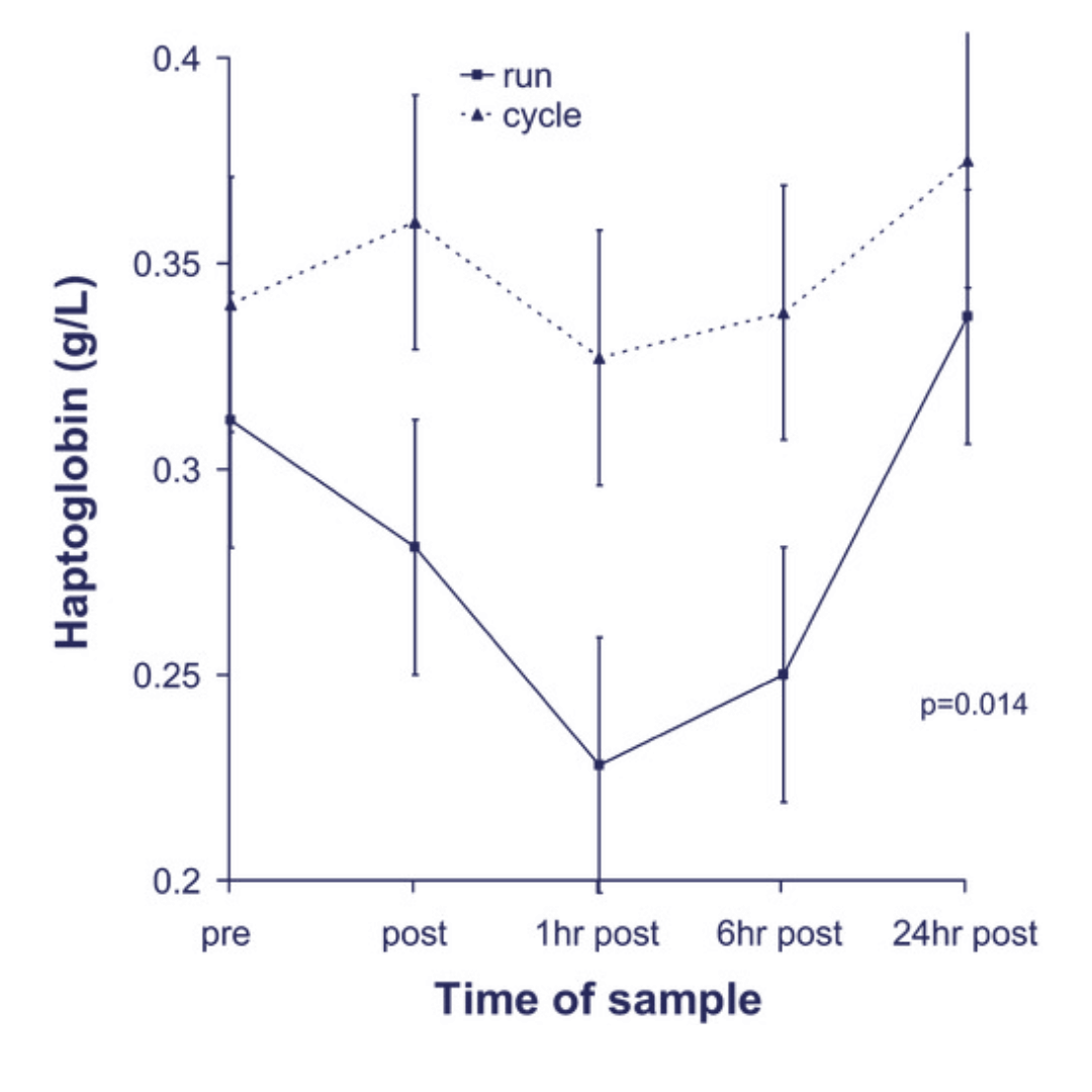 A process called foot strike hemolysis occurs in runners, especially those who run high mileage.