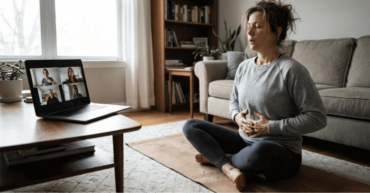 Researchers randomized 107 adults (mean age 41) to either six weekly 90-minute online Conscious Connected Breathwork (CCB) sessions or a waitlist control. CCB involves continuous rhythmic breathing without pauses between inhale and exhale.